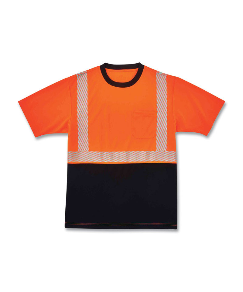 GloWear 8280BK Class 2 Performance T-Shirt with Black Bottom, Polyester, 5X-Large, Orange