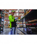 Class 2 black front performance T-shirt made of lightweight birdseye knit paired with 3M Scotchlite Comfort Trim. Moisture wicking treatment and armpit vents keep the user cool and dry. 30+ UPF for protection against harmful UV. An outside chest pocket to keep small items accessible. Black front, sleeves and collar hide dirt and wear.
