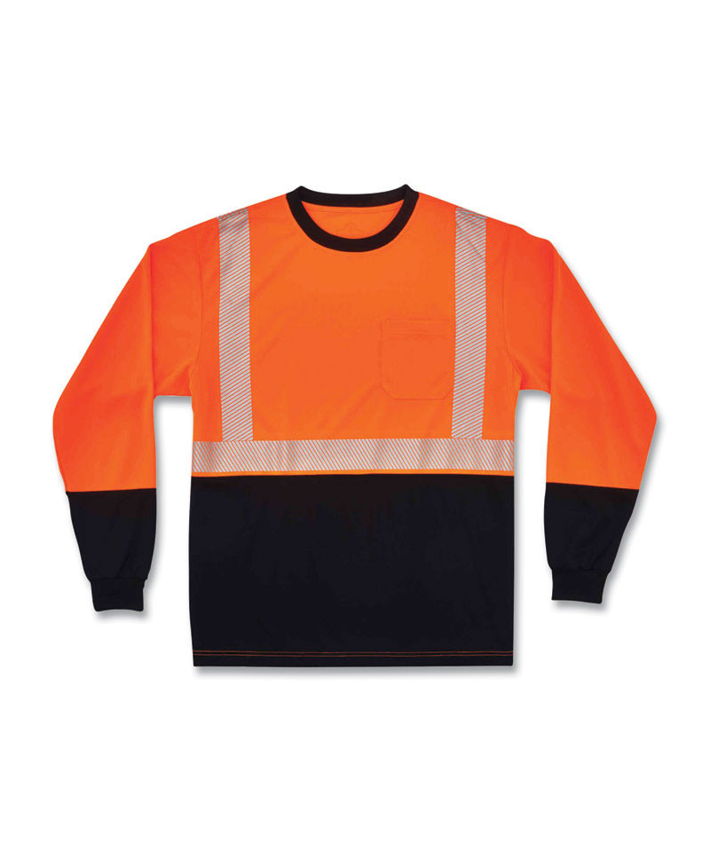 GloWear 8281BK Class 2 Long Sleeve Shirt with Black Bottom, Polyester, Large, Orange