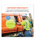 This t-shirt is designed for enhanced visibility and breathable comfort. With an extra soft, jersey-like feel, the 100% polyester fabric is the lightest weight ANSI 107-approved fabric on the market. Great for working in the heat, this reflective safety shirt features a moisture-wicking treatment and underarm vents to keep wearers cool and dry. It is rated to 30+ UPF for protection against the sun's harmful UV rays. The black panel across the bottom hides dirt, grit and dust to keep the shirt looking cleaner longer. Additionally, black vented underarm panels hide sweat and improve breathability. This hi-vis work shirt uses segmented 2 reflective tape for enhanced visibility at night or in low-light conditions. Unlike solid reflective tape, the flexibility of segmented tape allows reflecti