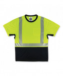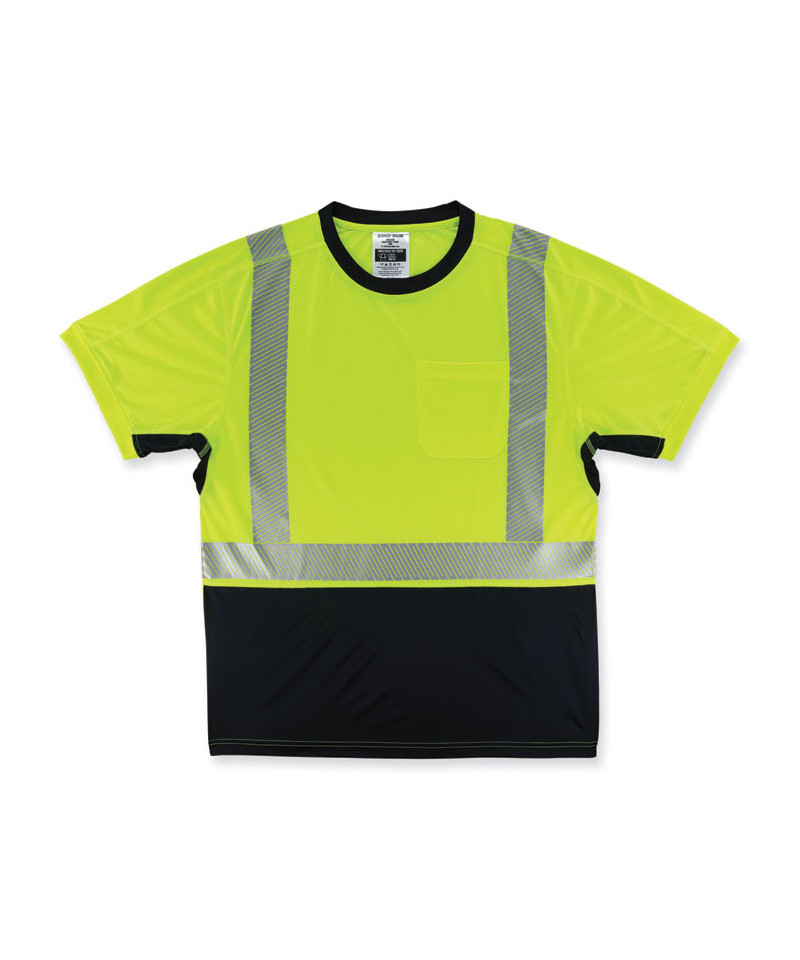 The GloWear 8283BK Lightweight Performance Hi-Vis T-Shirt is a Type R Class 2 shirt designed for enhanced visibility and breathable comfort. With an extra soft, jersey-like feel, this 100% polyester fabric is the lightest weight ANSI 107-approved fabric on the market. Great for working in the heat, this reflective safety shirt features a moisture-wicking treatment and underarm vents to keep wearers cool and dry. It is rated to 30+ UPF for protection against the sun's harmful UV rays. The black panel across the bottom hides dirt, grit and dust to keep the shirt looking cleaner longer. Additionally, black vented underarm panels hide sweat and improve breathability. This hi-vis work shirt uses segmented 2 reflective tape for enhanced visibility at night or in low-light conditions. Unlike solid reflective tape, the flexibility of segmented tape allows reflective clothing to feel more comfortable, lightweight and breathable.