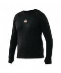 Midweight long sleeve base layer shirt is designed for comfortable warmth in cold conditions. Made with a stretch performance fit that warms core temperatures without overheating or restricting movement during strenuous activity. The 240 g polyester-spandex performance material provides warmth without the constricting or bulky feel often found with heavyweight base layers. The fabric is smooth and stretchable for easily layering under sweatshirts and jackets, plus thumb loops and a long tail for full coverage that stays in place. Unlike other base layers, this shirt is designed to sit slightly looser on the skin to enhance breathability and mobility while also preventing overheating providing an air gap for additional insulation. Raglan sleeves with wider underarms also make for full rang