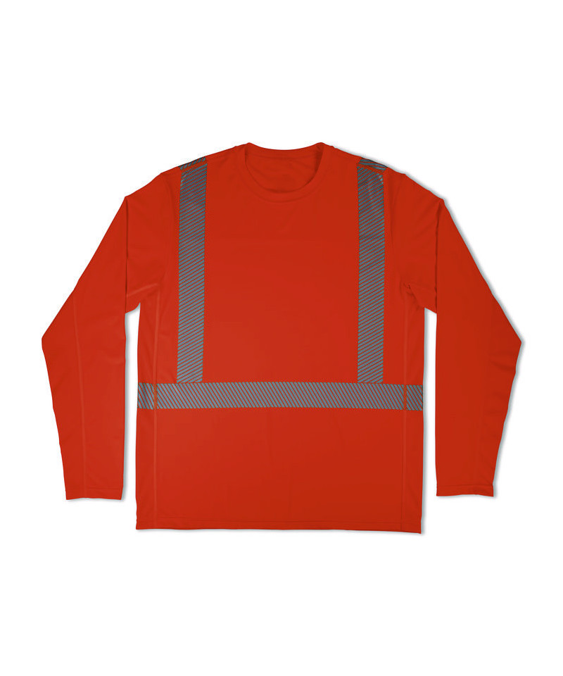 A Type R Class 2 shirt designed for enhanced visibility and breathable comfort. This sun shirt features evaporative technology for immediate cooling and UPF 50+ protection against the sun's harmful rays when working outside. Built with a performance fit, this long sleeve sun shirt is designed with a stretch fabric that provides easy mobility and unrestricted movement. Featuring moisture-wicking technology, an anti-odor treatment and breathable mesh paneling in the underarms and back, this long sleeve sun shirt will keep workers comfortably fresh, cool and dry all day.