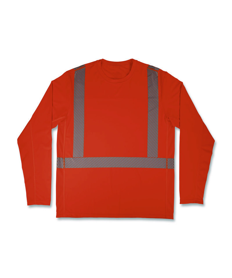 A Type R Class 2 shirt designed for enhanced visibility and breathable comfort. This sun shirt features evaporative technology for immediate cooling and UPF 50+ protection against the sun's harmful rays when working outside. Built with a performance fit, this long sleeve sun shirt is designed with a stretch fabric that provides easy mobility and unrestricted movement. Featuring moisture-wicking technology, an anti-odor treatment and breathable mesh paneling in the underarms and back, this long sleeve sun shirt will keep workers comfortably fresh, cool and dry all day.