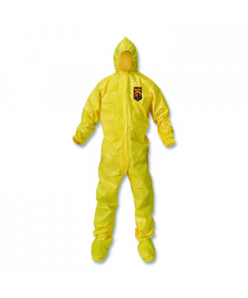 KleenGuard™ Personal Protective Equipment (PPE) enables rather than inhibits allowing for maximum productivity and safety for you and your employees. If you or your employees are working in an environment where liquid and dry chemicals are present, you need the right protection equipment. You can trust the KleenGuard™ A70 Chemical Spray Protection Coveralls for comfort and protection. They are made of a 1.5 mil polyethylene-coated fabric, which is resistant to many water-based liquids, greases and oils and liquid chemical splashes. They feature a wick-away lining for enhanced comfort, a liquid-resistant, extra-long zipper and a taped, sealable zipper flap. The seamless front gives the wearer more protection in the primary exposure area, and the REFLEX Coverall Design offers excellent fit and freedom of movement. This model comes with a hood, zipper front (with storm flap), and elastic wrists and ankles. Making the right Personal Protection choice is difficult. Perform with distinction with KleenGuard™ Personal Protective Equipment (PPE).