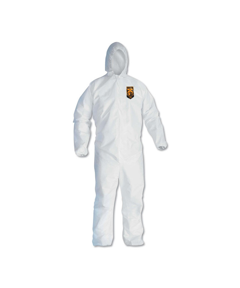 KleenGuard™ Personal Protective Equipment (PPE) enables rather than inhibits allowing for maximum productivity and safety for you and your employees. When your workers are in nonstop contact with liquid splashes and particles, KleenGuard™ A40 Liquid and Particle Protection Coveralls are a great addition to offer your team comfortable protective clothing. Features to provide more protection include the seamless front (for primary exposure area) and 1 inch zipper flap. They feature REFLEX design, which offers excellent fit and comfort (with elastic in the back) and freedom of movement. Made of breathable, microporous film to keep out debris, non-hazardous liquid chemicals and dry particulates, the KleenGuard™ A40 material gives your employees a better liquid barrier and a better particulate barrier than the leading competitor. These coveralls with hood pass NFPA 99 for antistatic materials, and pass ASTM F1670 testing for penetration of blood and bodily fluids. Popular industries using this product include liquid handling, aviation, pharmaceutical manufacturing, general manufacturing and so much more. Making the right Personal Protection choice is difficult. Perform with distinction with KleenGuard™ Personal Protective Equipment (PPE).