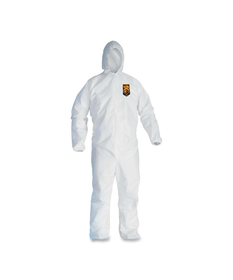 A45 Liquid/Particle Protection Surface Prep/Paint Coverall, Zipper Front, Elastic Wrist/Ankle/Hood, 2XL, White, 25/Carton