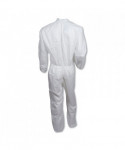 These liquid and particle protection coveralls are made of microporous film laminate with zipper front, flap over zipper and elastic in the back for improved protection.
