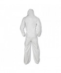 These liquid and particle protection coveralls are made of microporous film laminate with zipper front, flap over zipper and elastic in the back for improved protection.