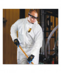 Protective Saranex 23-P shields wearers from dangers on-the-job. A soft fabric lining increases comfort for long-wear. A seamless front provides extra protection in the primary area of exposure.