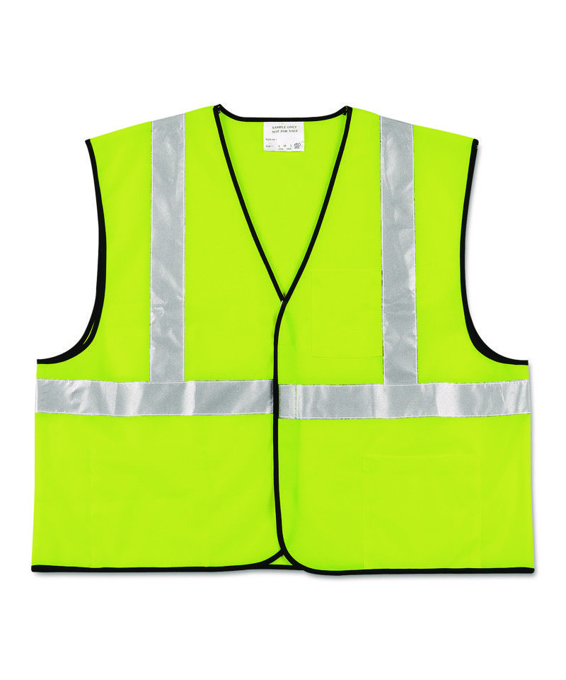 Occupational activities such as roadway, construction, airport and utility projects call for Luminator™ protection. This economy Class 2 vest is 100% solid polyester in lime green with a 2" silver reflective stripe. The hook and loop closure is a full 8" to stay in place even in the most inclement weather conditions. Two outer and one inside pocket allow worker to keep essentials close at hand. 10" imprintable width allows customization. Washable.
