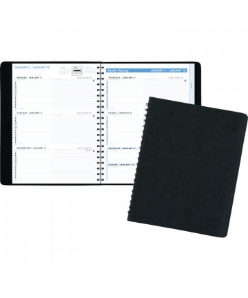 Two pages per month with unruled daily blocks for flexibility and quick notations. Six-month calendar reference on each spread for convenient advance planning.