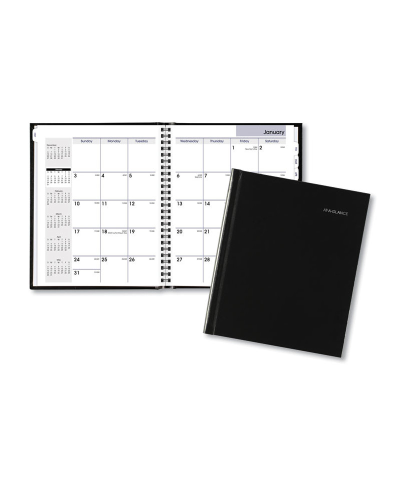 Hard cover is great for archiving. One month per two-page spread; past, current and four future months reference. Monthly tabs and storage pocket. Printed on high-quality paper with superior ink bleed resistance. Expand your organizational skills with special pages. Includes travel and expense tracking, personal information, contacts pages, 48 lined notes pages and a double-sided pocket.