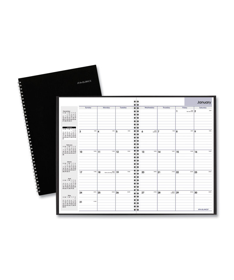 Keep the big picture in mind. One month per two-page spreads feature a standard format with large daily blocks, reference calendars and more-everything you need to stay on track. Premium poly cover and lay-flat, snag-free, twin-wire binding neatly keeps everything together. Printed on high-quality paper for superior ink-bleed resistance.