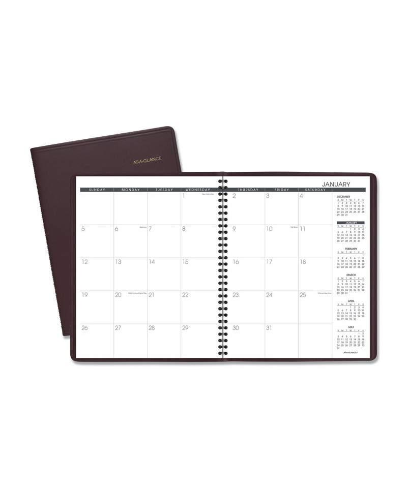 Great for big-picture monthly planning. Premium paper resists ink bleed. Perforated memo section for easy tear-out notes. One month per two-page spread with unruled blocks; past, current and future months reference. Telephone/address page. High-quality paper with superior ink bleed resistance.