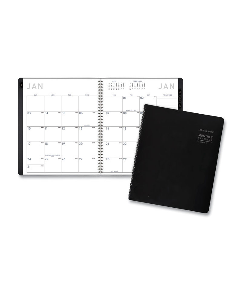 Contemporary Monthly Planner's unique cover features an embossed date design with a beautiful, modern-day aesthetic. Tabbed one month per two-page spreads provide unruled blocks, past and future month reference calendars along with all federal holidays highlighted to aid you in your long-term planning tasks. In the back of the book, additional sections and special pages deliver plenty of tools for notetaking, project management and more. Twin-wire binding neatly keeps everything together while minimizing the potential for snags on clothing and bags. Printed on premium paper to provide superior ink-bleed resistance.
