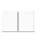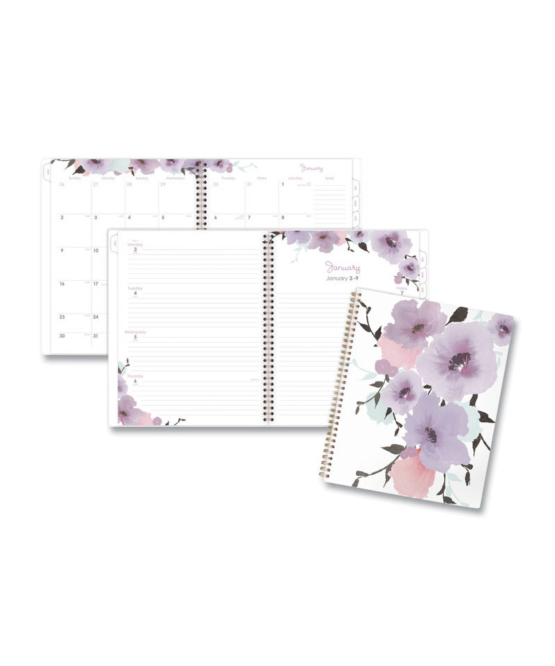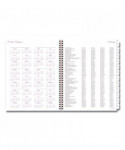 Planner covers a 12-month date range from January - December with Julian dates. One week per two-page spread with ruled planning space and notes section. Weeks run Monday Sunday. One month per two-page spread with unruled daily blocks and notes space provide plenty of room for scheduling and reminders. Each month is tabbed to quickly flip to any date. Past and future month reference calendars also included. Special pages include notes, contacts and event calendar pages. Double-sided poly pocket for storage included. Planner is wirebound.