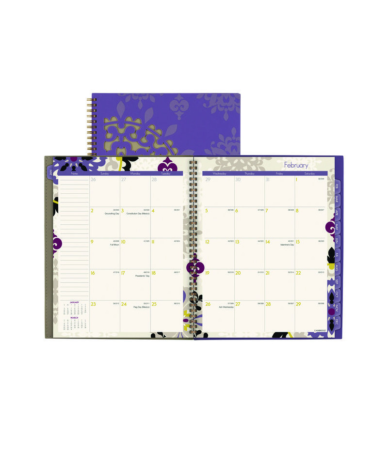 The classic medallion design is given a twist by pairing it with these vibrant colors. Fun, die-cut durable poly cover is great for both work and home. Monthly tabs for reference and quick navigation. Block format: open scheduling. Weekly: one week per two-page spread. Monthly: one month per two-page spread with notes space. Past and future months reference on each monthly page.