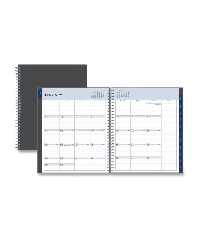 Add sophisticated appeal to your planning tasks with the sleek and professional Passages Monthly Planner. Durable, tear-resistant monthly tabs allow for easy access to your monthly views, while the two-page layouts offer plenty of writing space for detailed planning. Six untabbed, past-year monthly spreads help you transition into the new year, and a handy interior storage pocket allows you to carry along important loose documents. Durable covers and polished metal twin-wire binding enhance and preserve the book's elegant appearance. Thick, premium-quality, acid-free paper reduces the potential for ink bleed through.
