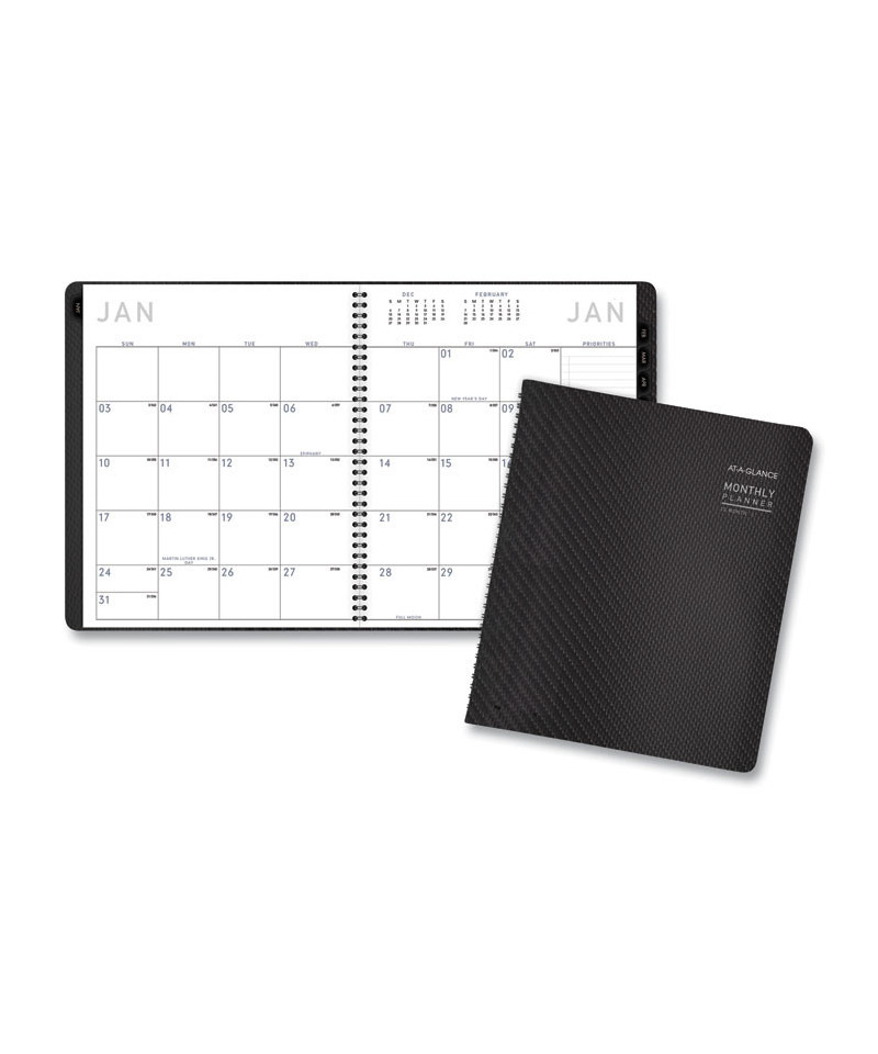 Contemporary Monthly Planner's unique cover features an embossed date design with a beautiful, modern-day aesthetic. Tabbed one month per two-page spreads provide unruled blocks, past and future month reference calendars along with all federal holidays highlighted to aid you in your long-term planning tasks. In the back of the book, additional sections and special pages deliver plenty of tools for notetaking, project management and more. Twin-wire binding neatly keeps everything together while minimizing the potential for snags on clothing and bags. Printed on premium paper to provide superior ink-bleed resistance.