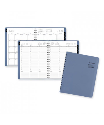 Luxurious and fashionable faux leather cover features an exterior zipper pocket and a buckle closure. Planner includes undated 12-month tab set, 16 undated weekly pages and 24 notes pages to start planning anytime. One week per two-page spread has ruled planning space with hourly appointment times from 8 a.m. to 5 p.m. One month per two-page spread has open daily blocks with a shaded area to write in the date. Each month is tabbed and future year reference calendars are displayed. Desk size starter set (size 4) with a 8.5" x 5.5" page size. Organizer cover is binder style with seven, 3/4" gold rings so pages stay secure. Starter set accessories include a zippered pouch, page marker ruler and 24-sheet note pad.