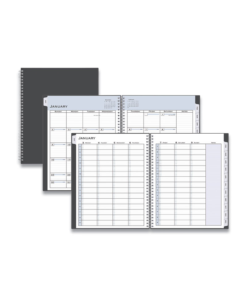Vertical planner features a timed weekly format from 7 am to 9:45 pm in 15 minute increments for detailed scheduling. Additional two-page-per-month calendar views include a Notes section. Durable, coated monthly calendar tabs help you quickly find your appointments. Thick, premium-quality pages reduce ink bleed-through to ensure your writing stays legible on every page. Clear, double-sided pocket page provides a handy location to store loose papers and notes. Wirebound planner runs from January to December and includes six bonus past monthly views (July-Dec.) for easy yearly transitions.