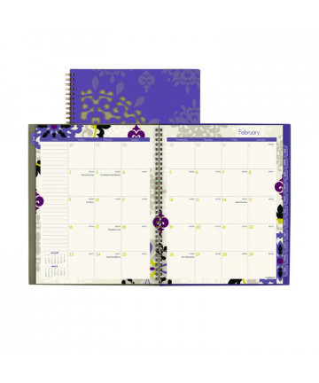 The professional exterior you're looking for, with the interior content you require. Easily plan out your year and stay on track every month, every week, every day along the way with the stylish Enterprise Weekly/Monthly Planner. One week per two-page spreads provide plenty of space for your daily schedule throughout the week, Monday through Sunday. Monthly spreads feature a standard daily block format with reference calendars and space for month-spanning notes, giving you everything you need for longer-range planning tasks. Durable, coated monthly tabs offer quick access to past, present and future months. Additional resources in the back of the book help you plan out your year and keep everything on track. Flexible cover and snag-free twin-wire binding ensure everything stays neatly together. Thick, premium, acid-free pages are printed entirely with soy-based inks.