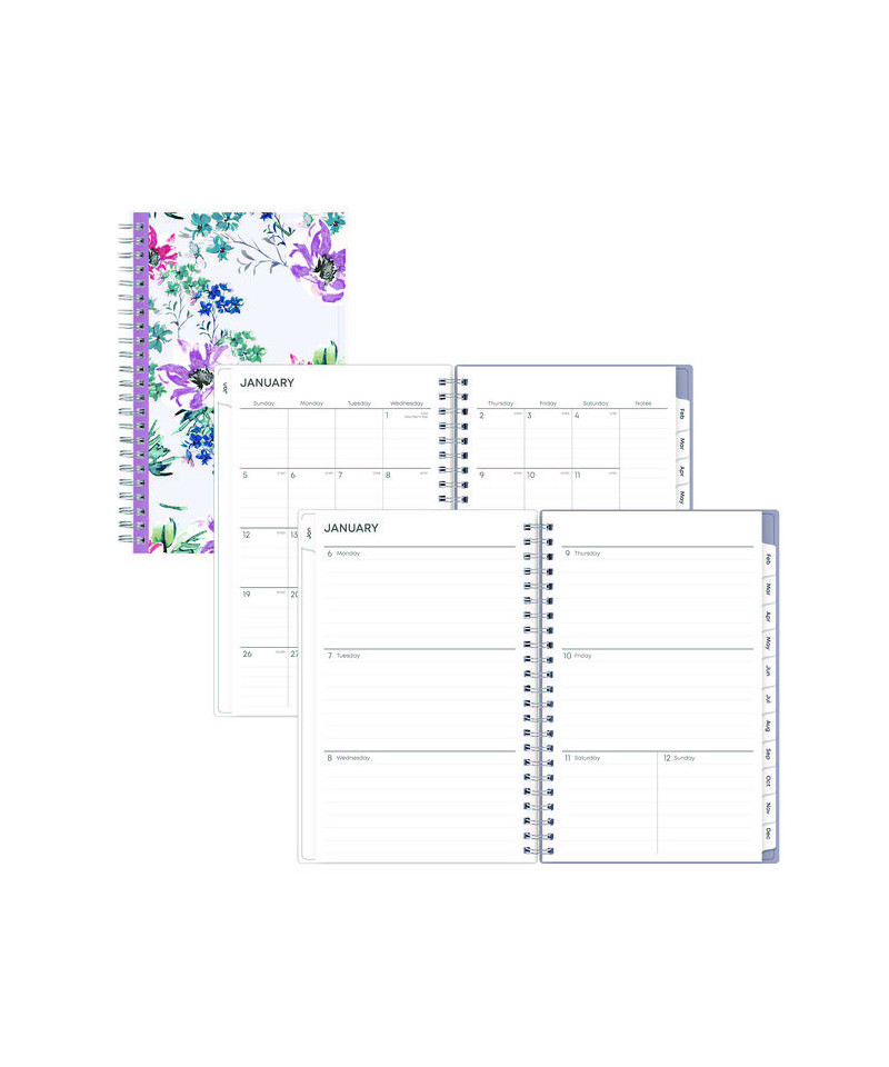 Blending a bouquet of warm and cool tones, the Laila Planner features watercolor-style wildflowers for a delicate look. Lined weekly pages bring simple order to hectic schedules. Monthly view per two-page spread includes a Notes section for important projects. Monthly tabs are coated for durability. "Create-Your-Own" (CYO) clear cover doubles as a storage pocket, allowing you to display photos or store notes. Twin-wire binding offers easy page turning. Includes pages for Yearly Goals, Contacts, Reference Calendars, and extra Notes pages. Thick, premium quality pages reduce ink bleed-through. Includes six bonus past monthly views for easy yearly transition (July-Dec).