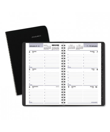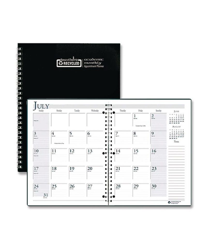 Attractive, flexible and convenient with a thoroughly professional appeal-do more with this Three-Hole Punched Wirebound Academic Monthly Planner. Featuring a letter-size, pre-punched format, its attractive leatherette cover is equally at home on your desk and inside your three-ring binder. Each two-page per month spread provides ruled daily blocks, a ruled notes column, a count of days-past and days-to-come as well as past- and future-month reference calendars, everything you need to keep track every important event throughout the school year. Twin-wire binding allows the planner to lay flat when open while minimizing the potential for snags on bags and clothing. Interior, double-sided storage pocket accommodates loose materials.