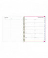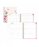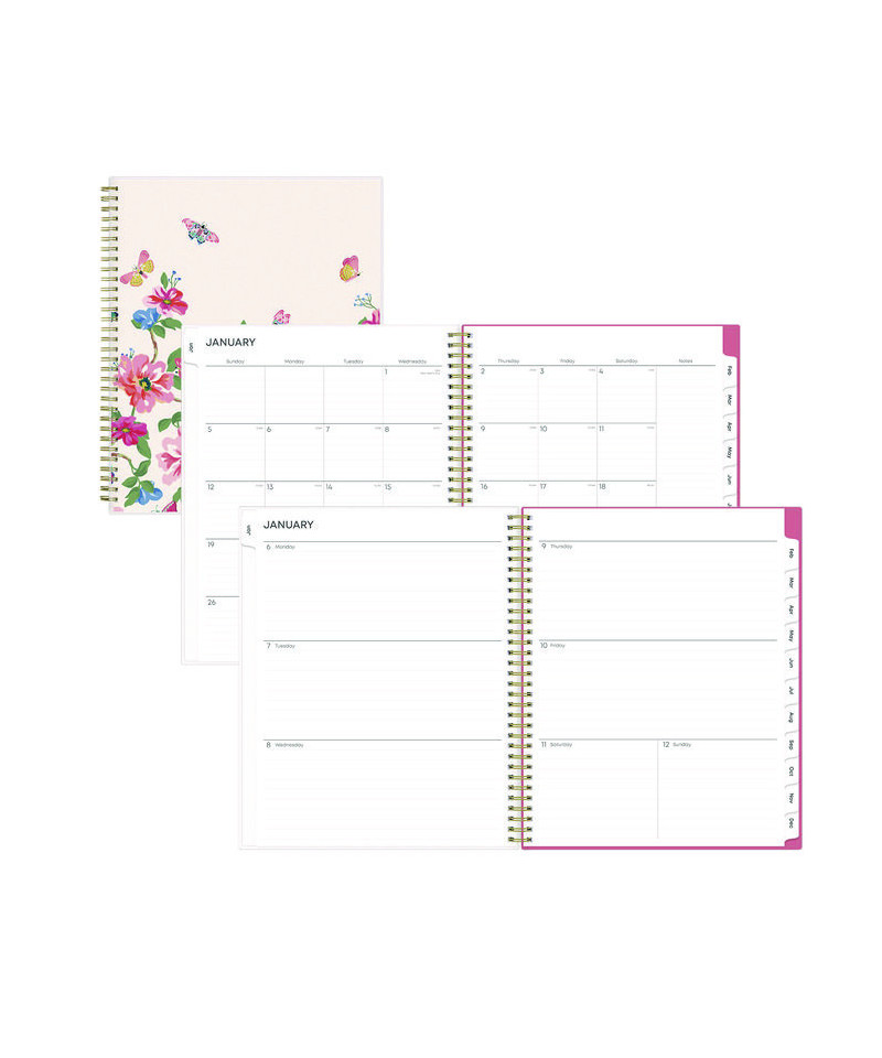 Frame your plans with elegance. Butterflies flit across this beautiful Fly By cover and bring peace to your busy schedule with its graceful pink and blue florals on a cream background. Two-page-per-week spread features lined daily blocks. Monthly view per two-page spread includes a Notes section for important projects. Monthly tabs are coated for durability. Durable, frosted flexible front cover. Twin-wire binding offers easy page turning. Includes pages for Yearly Goals, Contacts, Reference Calendars, and extra Notes pages. Thick, premium quality pages reduce ink bleed-through. Includes six bonus past monthly views for easy yearly transition (July-Dec).