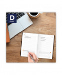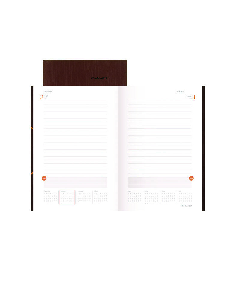 Track your calendar and take notes all in one place. This planning notebook has daily spreads and space to write down important reminders and to-do lists. Planning notebook covers a 12-month date range from January to December for year round planning. One day per page includes ruled planning space and a HOT spot reminder section for important reminders. Past and future calendars included across a two-day spread for quick date checking. Special features include monthly reference pages, a quick reference guide, and index. Planner has a bookbound design and bungee closure. 6" x 9" page size.