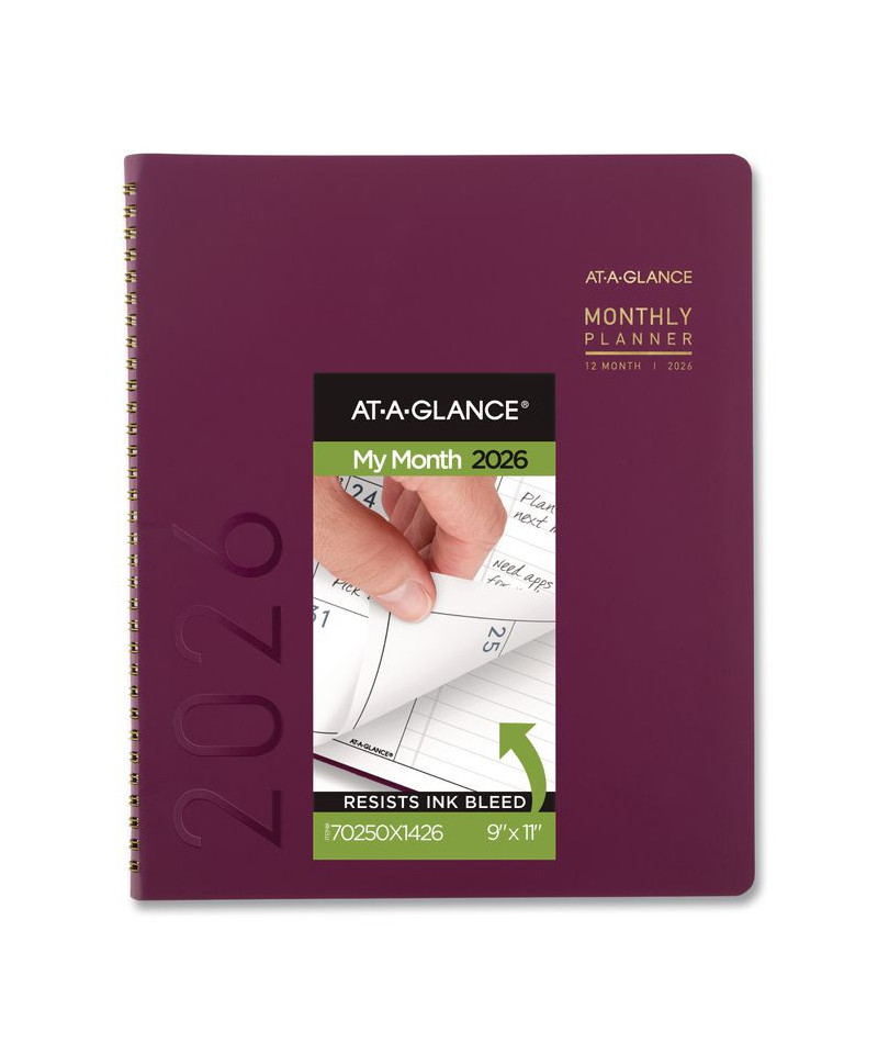 Contemporary Monthly Planner, 11.38 x 9.63, Burgundy Cover, 12-Month (Jan to Dec): 2026