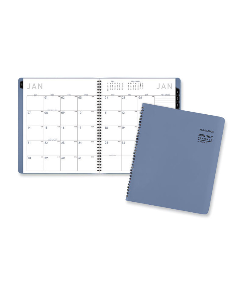 Unique cover features a contemporary embossed date design for a modern-day look. Tabbed one month per two-page spreads provide unruled blocks, past and future month reference calendars along with all federal holidays highlighted. In the back of the book, additional sections and special pages deliver plenty of space for notetaking and project management.