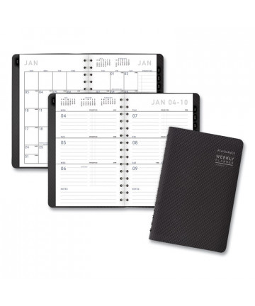 Be inspired by its serene Nevaeh cover design and get everything you need to organize tasks and be more productive with the Blue Sky® Nevaeh Weekly/Monthly Planner. Using the planner's flexible, open-format weekly spreads, keep track of appointments, daily tasks and takeaways. For longer-range planning, use the tabbed monthly views' daily blocks for specific events or its separate ruled notes area to capture anything that can't be easily pigeon-holed. Six past-year, untabbed monthly spreads help you transition into the new year, while additional pages for yearly goals, contacts, important dates and more help you stay on track. Durable cover features a field of wildflowers in bloom against a rich black background with gold-leaf accents, and its polished gold, snag-proof, twin-wire binding delivers easy page-turning. Thick, high-quality paper minimizes the potential for ink bleed through.
