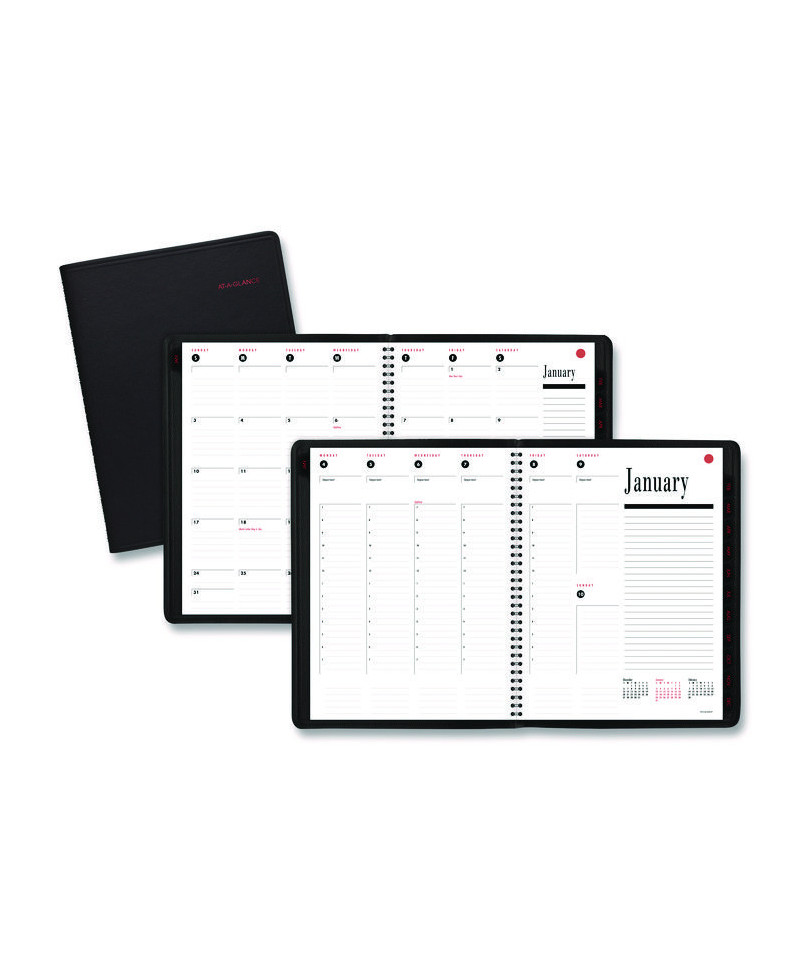 Combines monthly calendars for big-picture planning with a contemporary, weekly-planning format. High-quality paper features superior ink bleed resistance. Monthly tabs for quick reference. Weekly: one week per two-page spread with past, current and future months reference. Monthly: tabbed one month per two-page spread with ruled blocks with past and future months reference. Large notes area with each week.