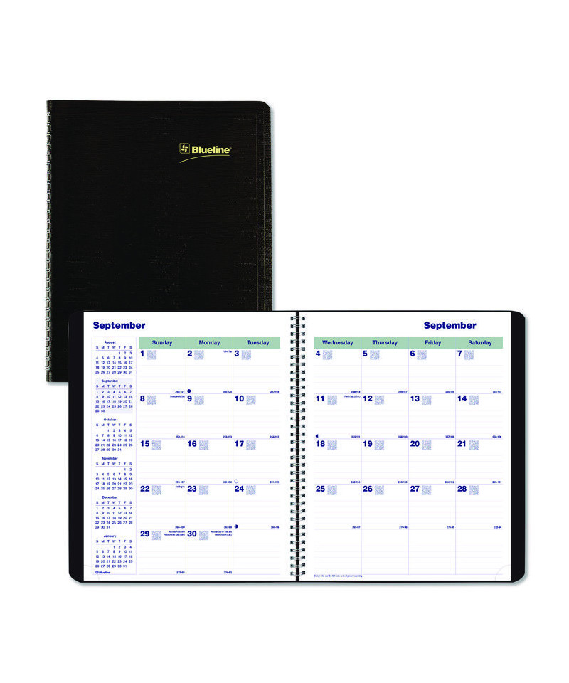 Monthly spreads feature a familiar layout, but each daily block also features a pre-printed QR Code to enable easy integration into the free Blueline Reminder app. Just plan, scan, click and go. Expanded calendar range easily accommodates annual transitions. Download the free Blueline Reminder app from the Apple App Store or Google Play.