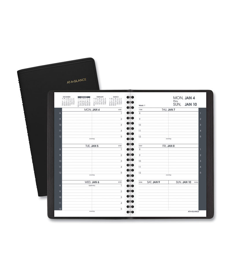 Plan your week in hourly intervals. Premium cover for enhanced durability with a storage pocket. One week per two-page spread. Includes past, current and future month reference calendars. High-quality paper with superior ink bleed resistance.