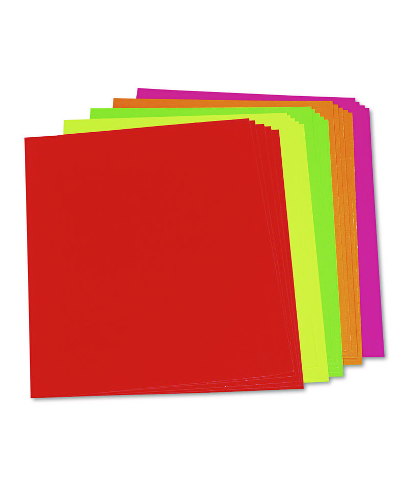 Vivid, fade-resistant color on two sides with a smooth, hard finish. Rigid 12-pt. caliper board. Five each of neon green, neon orange, neon pink, neon red and neon yellow.