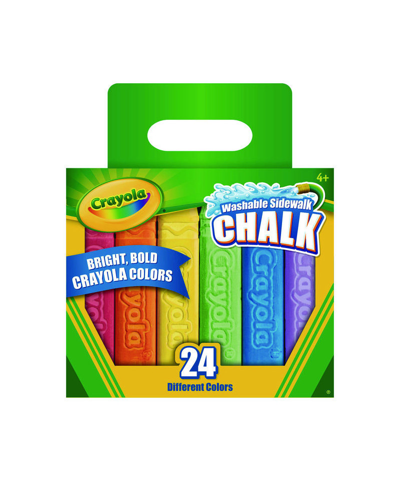 Go big and bold with Crayola® Washable Sidewalk Chalk. Ideal for sidewalks and driveways, this set gets kids outside for artistic, imaginative fun. Create colorful murals, large handwritten messages, or foundations for traditional chalk games including hopscotch, tic tac toe and four square! This set includes vibrant Crayola® colors that are perfect for helping your art pop against sidewalk and driveway surfaces. Crayola® chalk features a special anti-roll shape to prevent it from rolling down driveways and other surfaces. Kids can keep their chalk close at hand as they create one of a kind sidewalk chalk art. Crayola® Sidewalk Chalk washes clean from sidewalks and driveways, simply use a water hose to spray away the color!