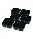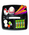 Sort your supplies for easy use and storage. The caddy has three compartments (one large and two small). The rounded handle has no sharp edges. Completely washable and dishwasher safe. Take your supplies from the closet to the worktable quickly and simply.