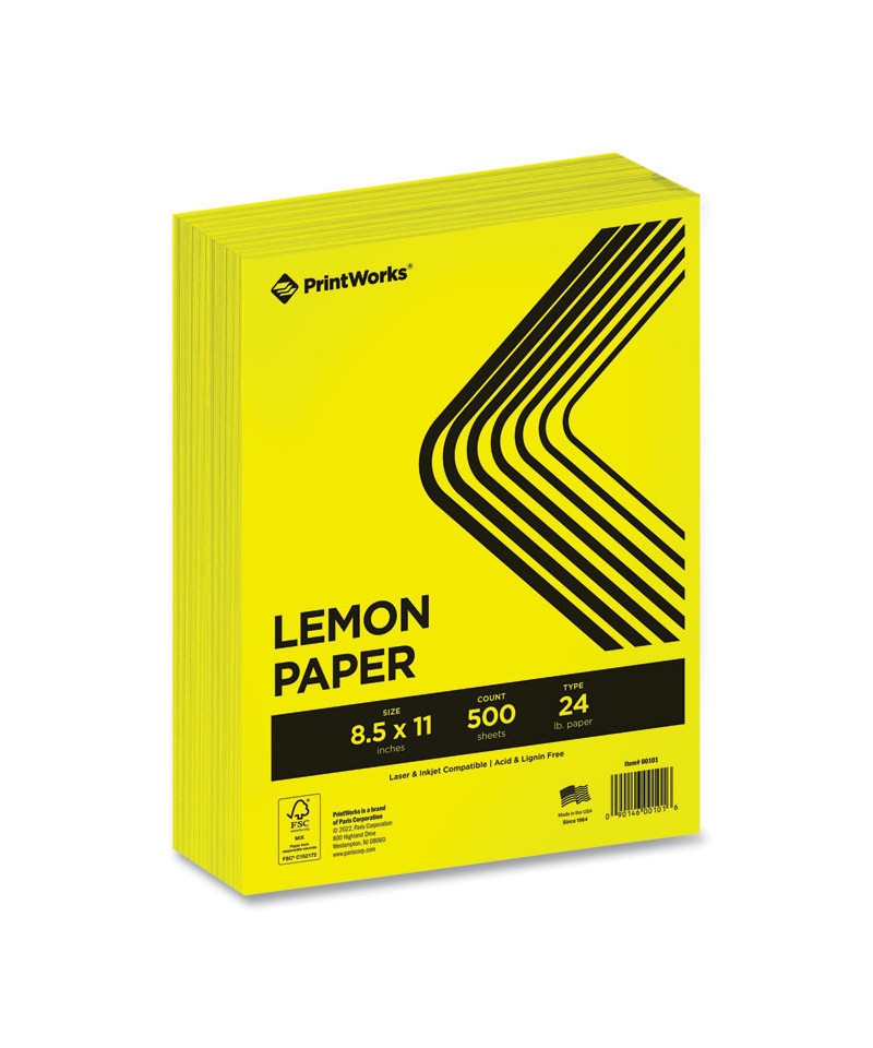 PrintWorks® Professional Color Paper is great for flyers, signs and other print projects that really pop! The vibrant color makes this paper ideal for printing and paper crafting. Whether you are event planning, pulling together a school project or are creating brochures, this paper will provide the color: just add black ink! PrintWorks is guaranteed to give you impactful results on all inkjet and laser printers and desktop cutting machines. All PrintWorks colored paper is solid-dyed core all the way through for cutting, tearing, and folding. The only limit is your imagination. What will you create?