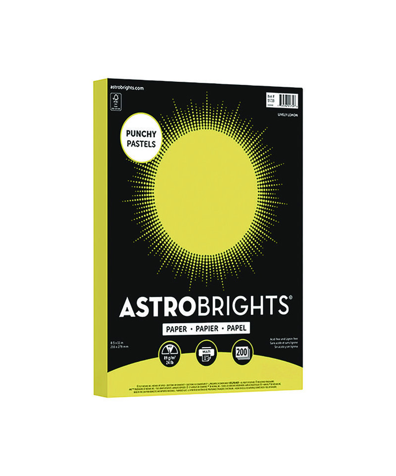 Color Paper - "Punchy Pastels" Assortment, 24 lb Bond Weight, 8.5 x 11, Lively Lemon, 200/Pack