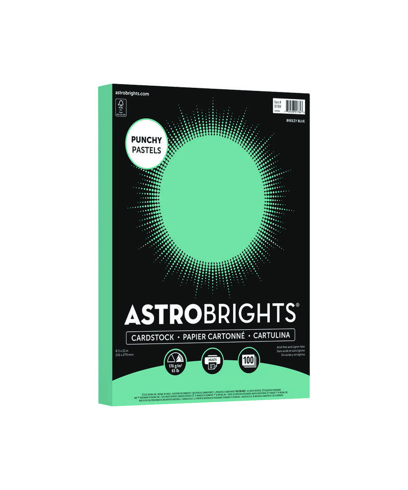 Color Cardstock -"Punchy Pastels" Assortment, 65 lb Cover Weight, 8.5 x 11, Breezy Blue, 100/Pack