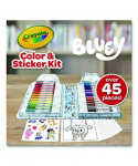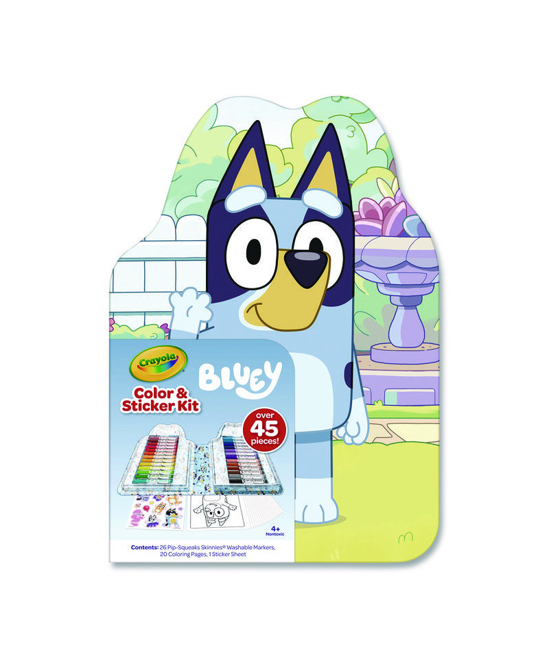 The Crayola Bluey Color & Sticker Kit is a perfect blend of creativity and fun for kids. This art kit is designed to inspire children to express their creativity through coloring and sticker play. It features some of their favorite Bluey characters on Bluey Coloring Sheets and Bluey Stickers, providing hours of screen-free time. The kit comes with 26 Pip-Squeaks Skinnies Washable Markers that ensure easy cleanup for surfaces and hands. It's an ideal travel activity for kids, offering on-the-go fun. The markers pack easily back into their storage tray, making it a convenient arts and crafts set. This nontoxic coloring set is a perfect Bluey gift for kids, fostering their creativity in a safe and enjoyable way.