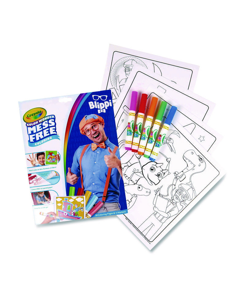 Get into high-spirits and turn real-world learning into playful adventures! With this Color Wonder Kit from Crayola®, young artists can color entertaining scenes from Blippi's popular series, while you keep art time clean. Magically mess-free, the included Color Wonder markers' ink only transfers to Color Wonder paper, never to skin, clothing, furniture or carpets. In addition to five markers, this kit includes 18 coloring pages depicting Blippi's lifelong learning excursions; and setting the stage for endless creativity, each page can accommodate all Color Wonder markers, paints and stamps (paints and stamps sold separately). Foldalope storage container keeps the pages and markers together for easy, on-the-go coloring. Thrill the young, energetic learners in your life—safe and nontoxic Color Wonder Kits are a wonderful gift idea.