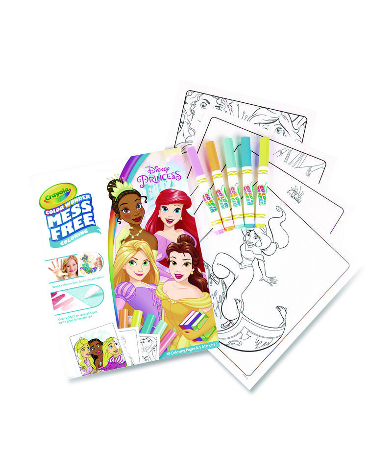 Crayola Color Wonder inks appear only on special Color Wonder Paper—not on skin, clothing or carpets! This set contains 18 Disney Princess Coloring Pages and five Color Wonder Markers. Folder style packaging works as reusable storage for your coloring pages and markers. Works with all Color Wonder paints, markers, and stamps. Makes the perfect addition to any Disney Princess collection. Included art features Belle, Jasmine, Ariel and more. Great gift for children ages 3 and up!
