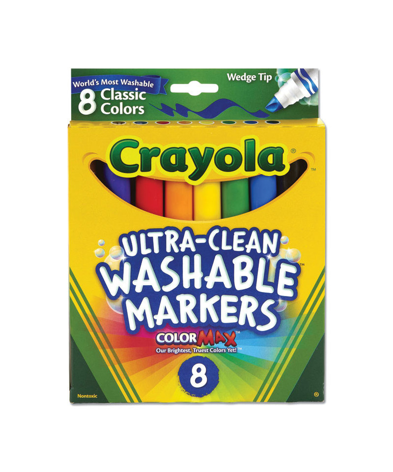 Keep color where it belongs with Crayola® Ultra-Clean Washable Markers, the perfect choice for worry-free creativity. Featuring vibrant Color Max Ink technology, these markers deliver bold, long-lasting color without bleeding through the page, ensuring clean and beautiful results every time. Designed with parents and teachers in mind, the ultra-washable formula easily rinses off skin, walls and most washable clothing, making cleanup a breeze. Ideal for classrooms, art projects and home use, these markers provide bright, vivid colors that inspire creativity while keeping messes under control. Let kids explore their artistic side confidently with these reliable, easy-to-clean markers.