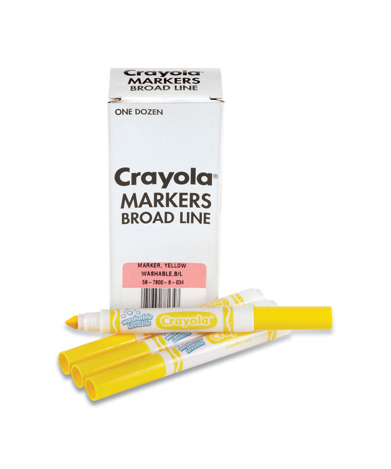 Order your favorite Crayola Marker color in bulk! Conveniently packaged in a reusable tuck box, each set contains 12 of the same color. With its conical tip, the Crayola Broad Line Marker is a versatile drawing tool. Perfect for coloring in large areas, these markers are also great for drawing thin lines or dots. Kids can even create a ribbon effect with lines that taper from thick to thin. Broad line markers lay down plenty of color and won't smudge or bleed through paper. Great for classrooms, art studios, and more!