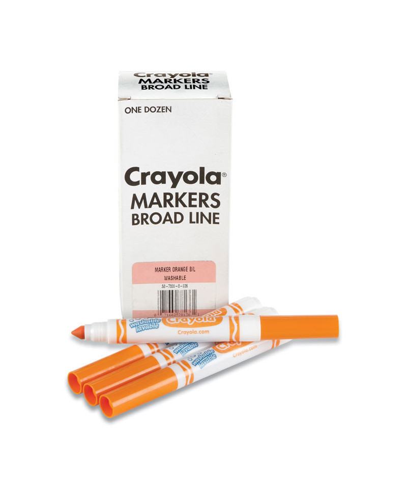 Order your favorite Crayola Marker color in bulk! Conveniently packaged in a reusable tuck box, each set contains 12 of the same color. With its conical tip, the Crayola Broad Line Marker is a versatile drawing tool. Perfect for coloring in large areas, these markers are also great for drawing thin lines or dots. Kids can even create a ribbon effect with lines that taper from thick to thin. Broad line markers lay down plenty of color and won't smudge or bleed through paper. Great for classrooms, art studios, and more!