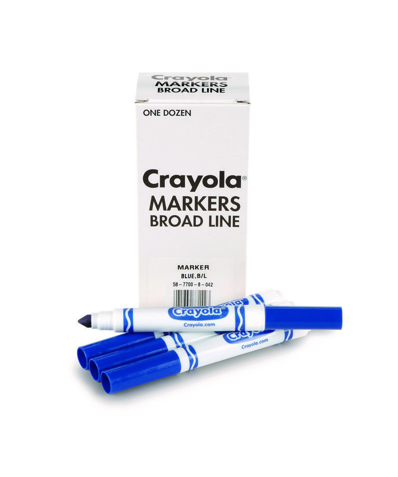 Order your favorite Crayola Marker color in bulk! Conveniently packaged in a reusable tuck box, each set contains 12 of the same color. With its conical tip, the Crayola Broad Line Marker is a versatile drawing tool. Perfect for coloring in large areas, these markers are also great for drawing thin lines or dots. Kids can even create a ribbon effect with lines that taper from thick to thin. Broad line markers lay down plenty of color and won't smudge or bleed through paper. Great for classrooms, art studios, and more!